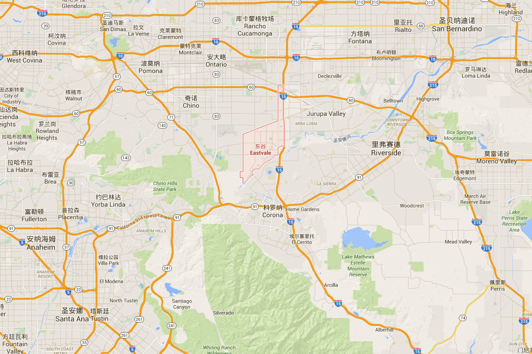 由于 临近15、91、60号高速,交通方便,房价低,房子大,因此有很多工作在橙县和洛杉矶县的居民居住于此。东谷家庭年收入在河滨县最高,家庭自有住房比例高,贫困率低,城市规划超前。